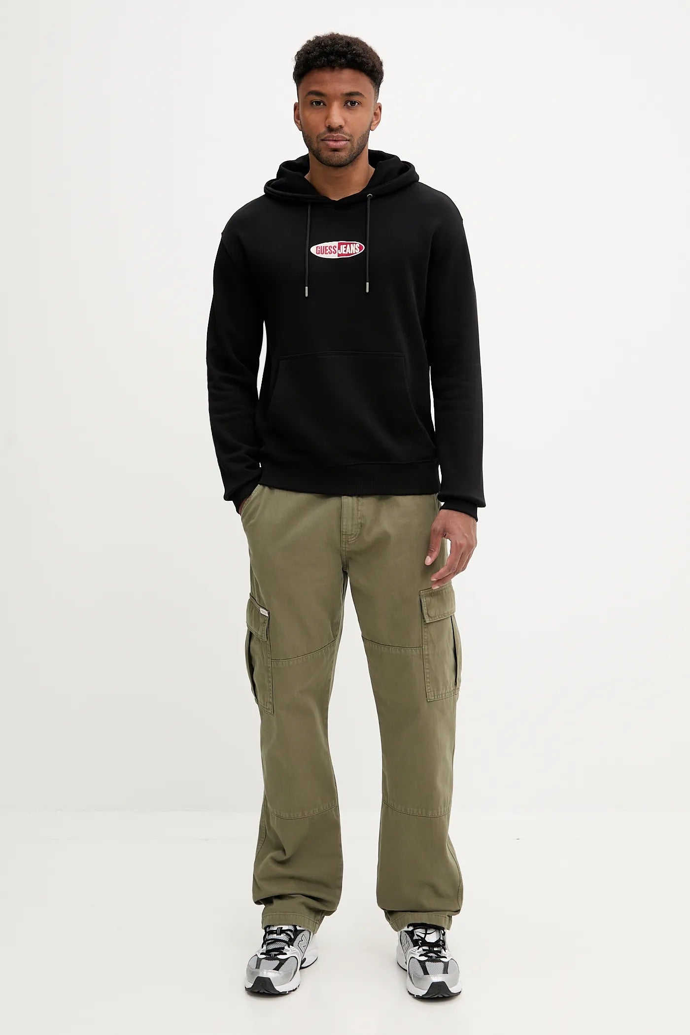Introducing the Guess Original Men Oversized Hoodie. Made with premium materials and expert craftsmanship, this hoodie combines style and comfort. Stay warm and trendy with its oversized fit and stand out with the iconic Guess logo. An essential addition to any fashion-savvy man's wardrobe.